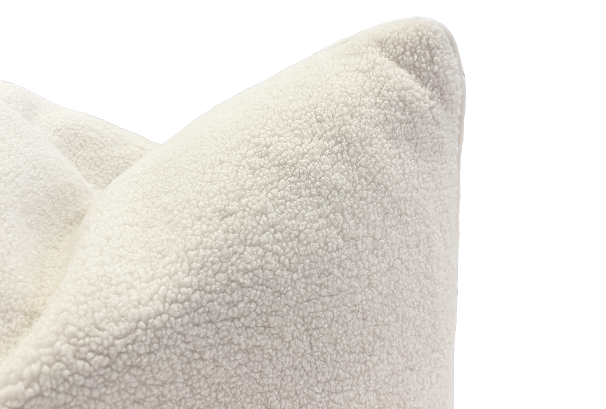 Coussin en bouclettes teddy crème, et cordon de velours.