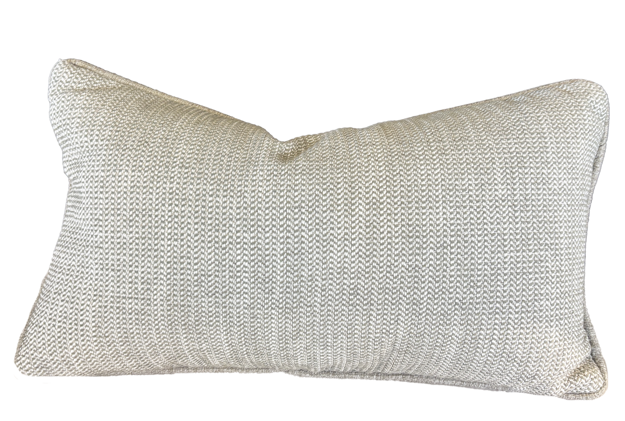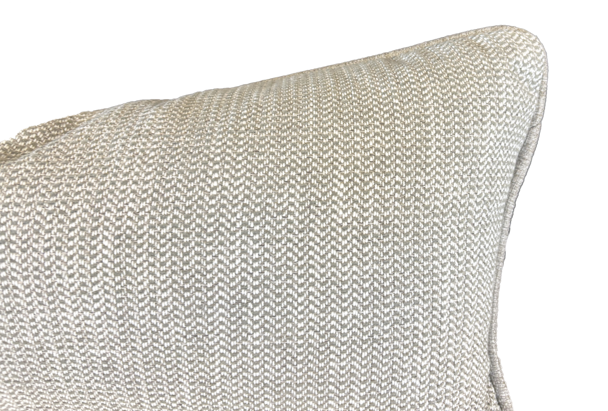Coussin en chevrons taupe et gris, et cordon ton sur ton.