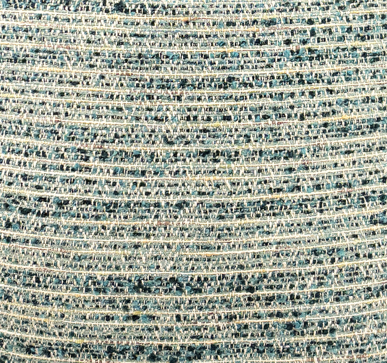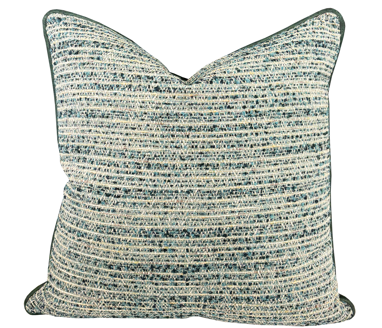 Coussin réversible, en velours vert et tweed crème et acqua, de notre collection privée.