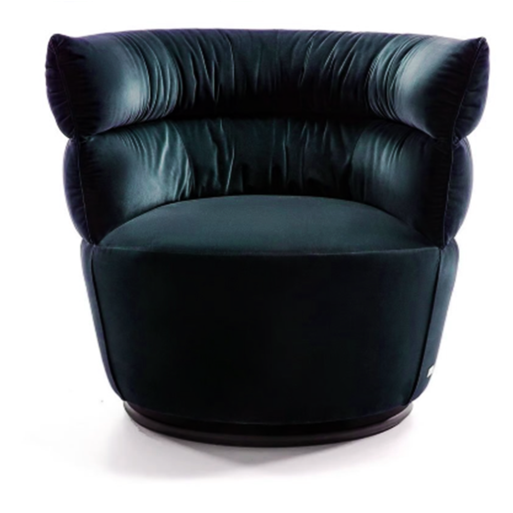 Fauteuil pivotant en velours Bleu de minuit, fait en Italie.