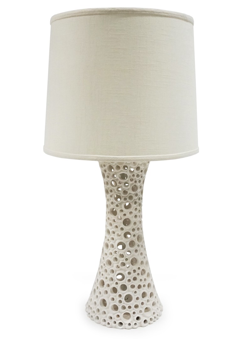 Lampe de table en résine coulée blanche matte