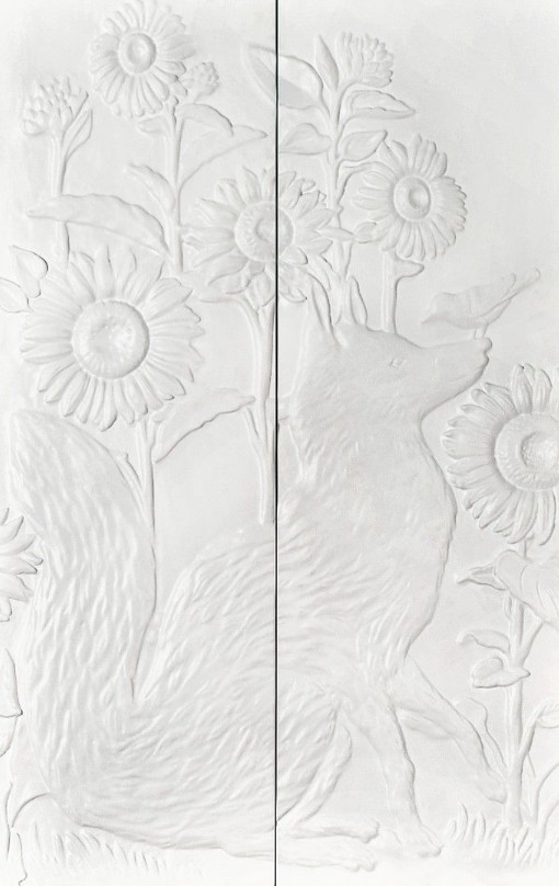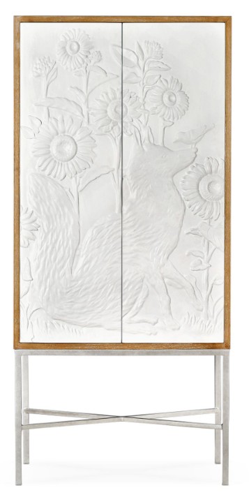 Armoire en chêne massif cérusé et résine coulée fini plâtre.
