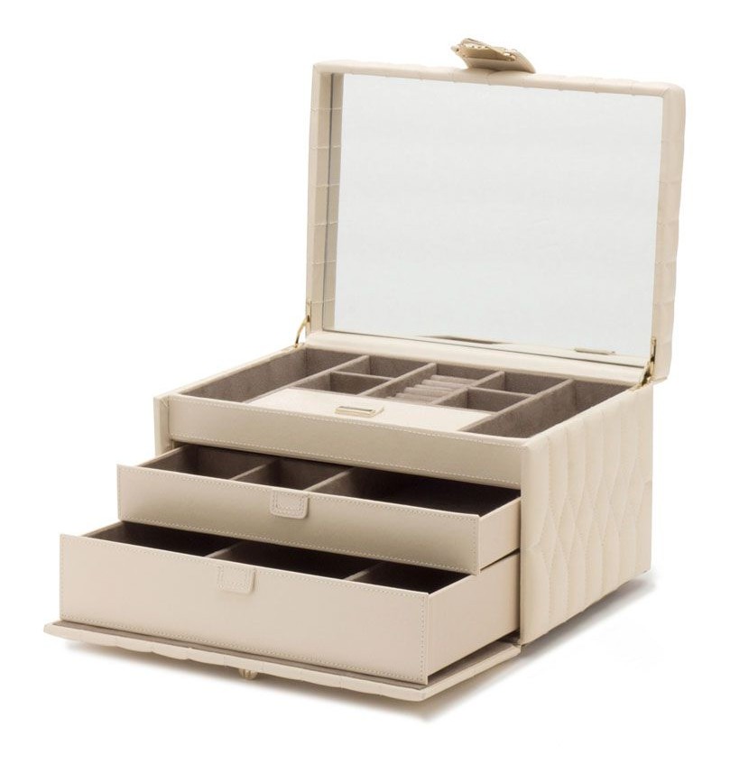 Coffre à bijoux en cuir matelassé ivoire.
